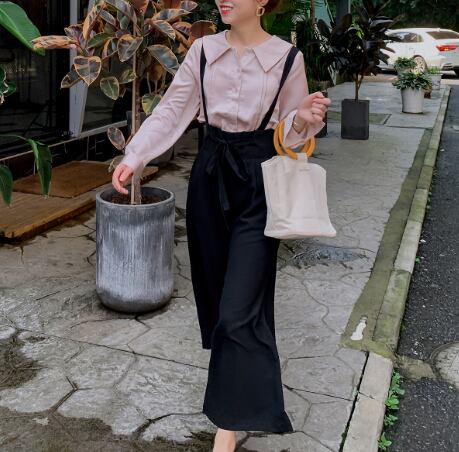 肩ひも付きのワイドパンツです♪