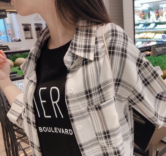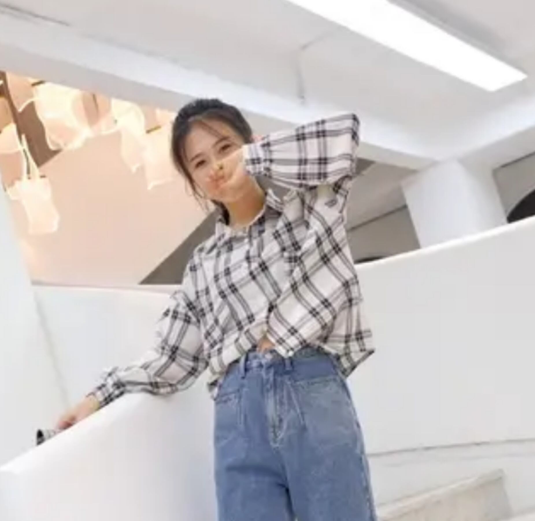 春夏 チェック柄 長袖シャツ 2size 2color XXS XS