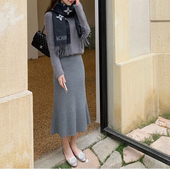 女性らしさを演出できるマーメイドスカートです☆羊毛混で程よい弾力感があり肌触りよく仕上げています。ベーシックなオフホワイトやグレー、今年トレンドカラーのグリーンもコーデのアクセントになりオススメです♪