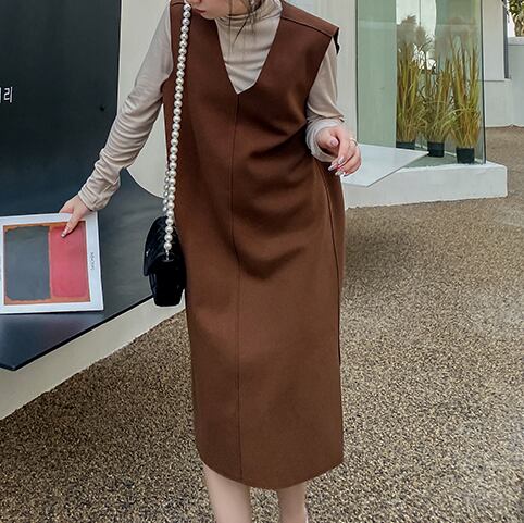 保温性と程よいハリ感のある生地で秋冬にぴったりノースリーブワンピースです。同じ生地で作られた紐ベルト付きで、アレンジの幅が広がります♪サイドにスリットが入っていますので軽やかさもプラス☆