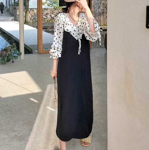 Vネック キャミソールワンピース 2color 3size XS S M S2-171 小柄 低身長 小さいサイズ